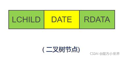 二叉树一般采用链式存储方式:每个结点包含两个指针域,指向两个孩子结点,还包含一个数据域,存储结点信息。