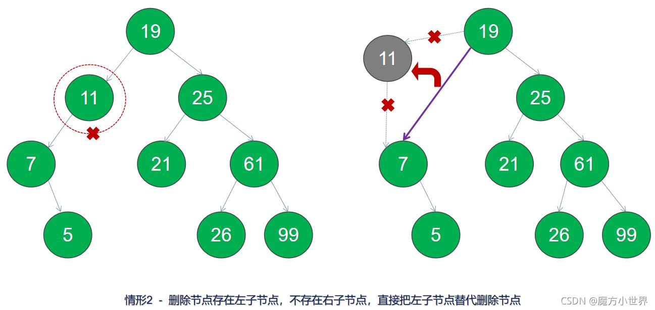 //2.删除结点存在左子树,不存在右子树,直接把左子节点替代删除结点