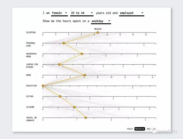 我们常常愿意与他人做比较,有时我们想弄明白相较于同龄人,同性别的人或者在某方面相似的人,我们是否是“正常”的那些。Nathan Yau的可视化就可以帮你一探究竟。