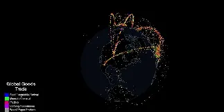 深色背景上明亮的颜色有助于可视化的清晰度,同时也提供了一些有趣的信息,比如这些商品从哪儿来。移动地球也提供了一个相当惊人的可视化效果。