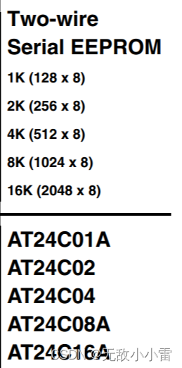 TWO-wire Serial EEPROM:两线串行的EEPROM。其中,两线:即是IIC的两线,串行:串行通信。