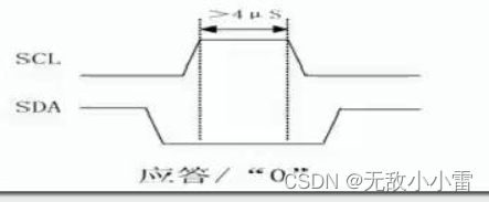 应答信号:SCL为高电平期间,SDA输出一个低电平