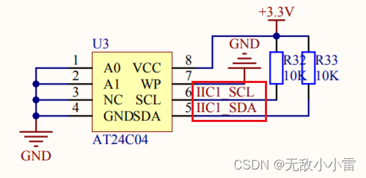 4,在IIC总线上必须接两个上拉电阻,用于将总线拉高