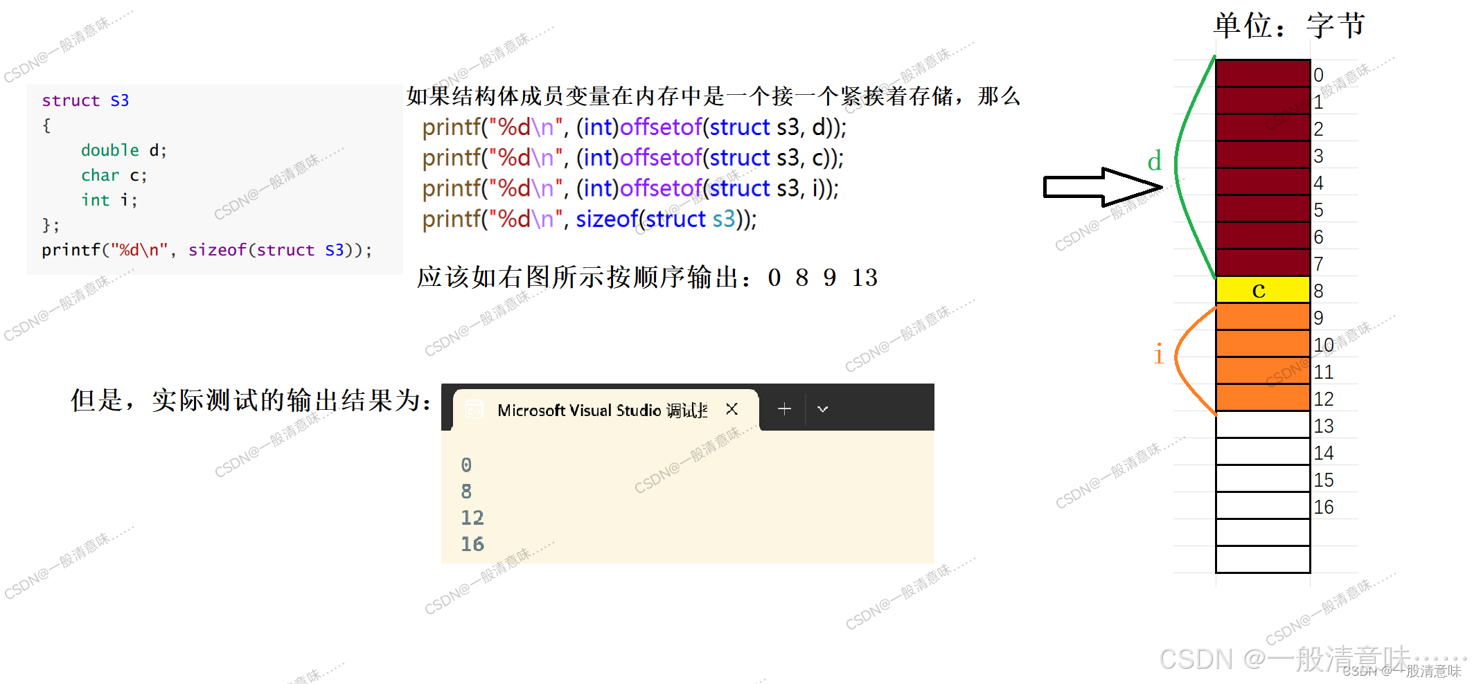 这是因为结构体的数据在存储时要满足内存对齐,那具体的规则是怎样呢,别急,我们接着往下看。
