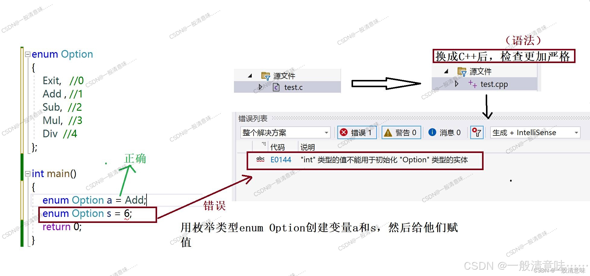4. 和#define定义的标识符比较枚举有类型检查,更加严谨
