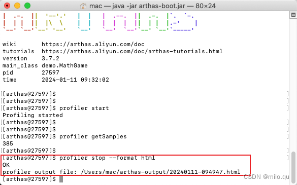 默认情况下,arthas 使用 3658 端口,则可以打开: http://localhost:3658/arthas-output/在新窗口打开 查看到arthas-output