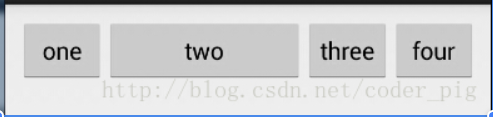 在TableLayout中设置了四个按钮,接着在最外层的TableLayout中添加以下属性: android:stretchColumns = "1"(设置第二列为可拉伸列,让该列填满这一行所有的剩余空间)