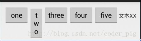 设置了5个按钮和一个文本框,在最外层的TableLayout中添加以下属性: android:shrinkColumns = "1"(设置第二个列为可收缩列)