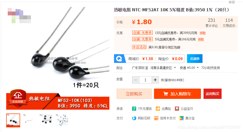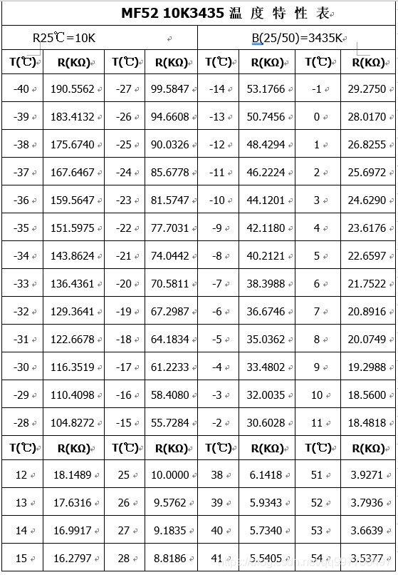 本文介绍的程序对应的热敏电阻型号是 NTC-MF52AT 10K 5%精度 B值:3950 1%