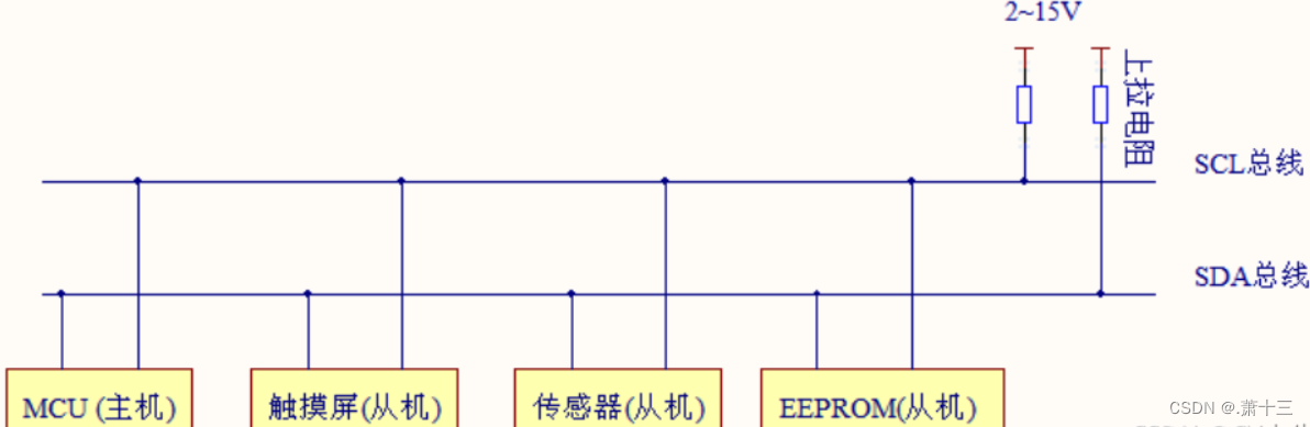 (1) 它是一个支持设备的总线。“总线”指多个设备共用的信号线。在一个 I2C 通讯总线中,可连接多个 I2C 通讯设备,支持多个通讯主机及多个通讯从机。