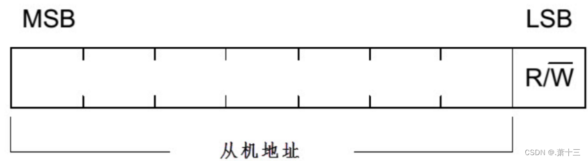 I2C 协议规定设备地址可以是 7 位或 10 位,实际中 7 位的地址应用比较广泛。紧跟设备地址的一个数据位用来表示数据传输方向,它是数据方向位 (R/),第 8 位或第 11 位。数据方向位为“1”时表示主机由从机读数据,该位为“0”时表示主机向从机写数据。