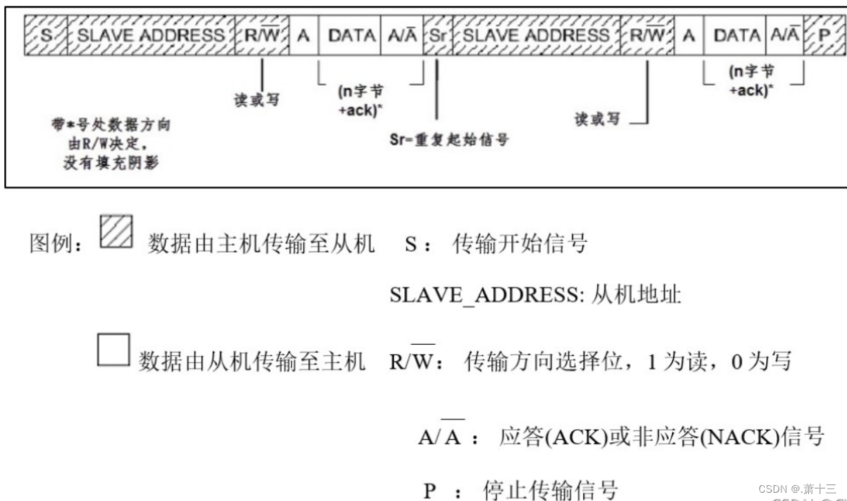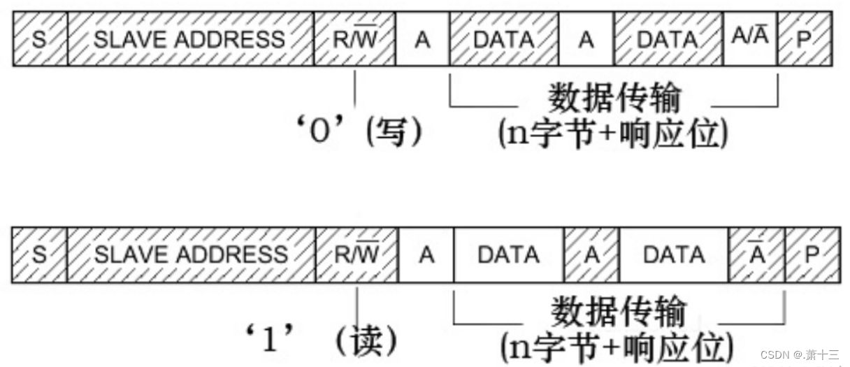 读数据方向时,主机会释放对 SDA 信号线的控制,由从机控制 SDA 信号线,主机接收信号,写 数据方向时,SDA 由主机控制,从机接收信号。
