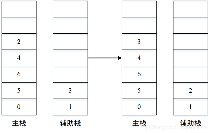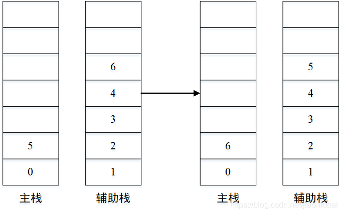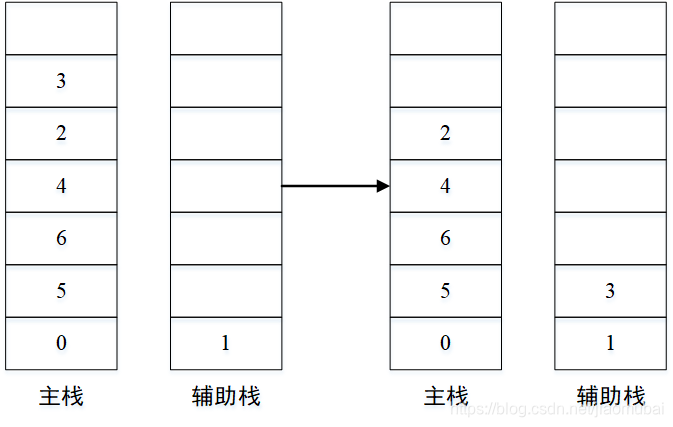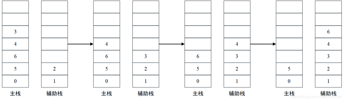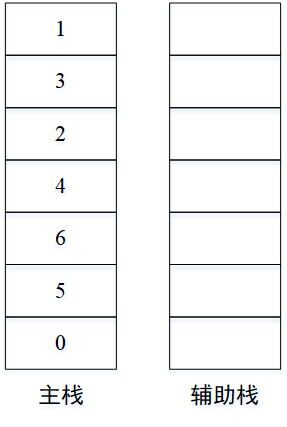 图解:假设当前主栈里的元素是{0,5,6,4,2,3,1}。过程图解如下: