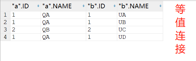 select * from TQA a join TUB b on a.id=b.id;~~~~~等值连接也可以这样写