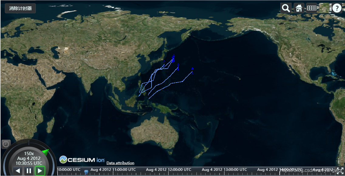 用定时器模拟实时获取后台数据 当取到数据后实体同时移动到目标位置 这种方式不再与Cesium时间关联