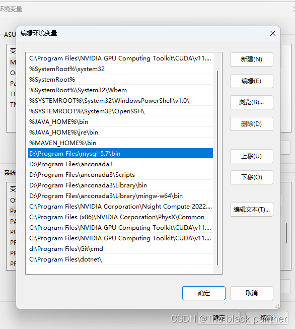 注意:变量值要根据自己电脑放置的mysql安装目录进行改动,比如我电脑mysql安装包放置的磁盘路径是:D:\Program Files\mysql-5.7