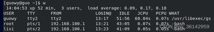 在其他命令执行结果中,有显示TTY这列信息,就是指终端名称信息,其对应的记录是进一步的详细说明。