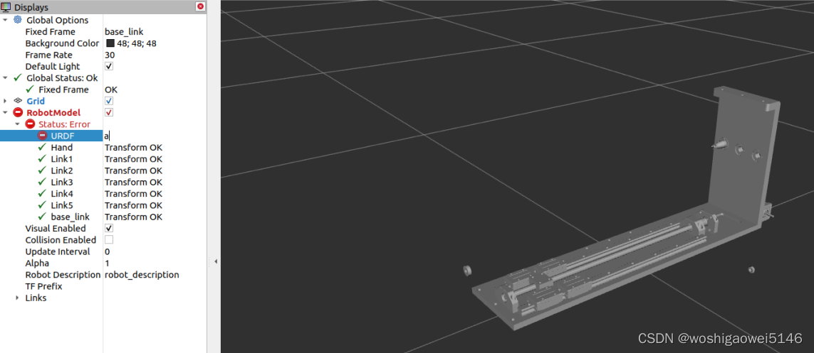 平移副的坐标系应该选在其所在轴的轴线上,而不要选在随Link移动的坐标系。