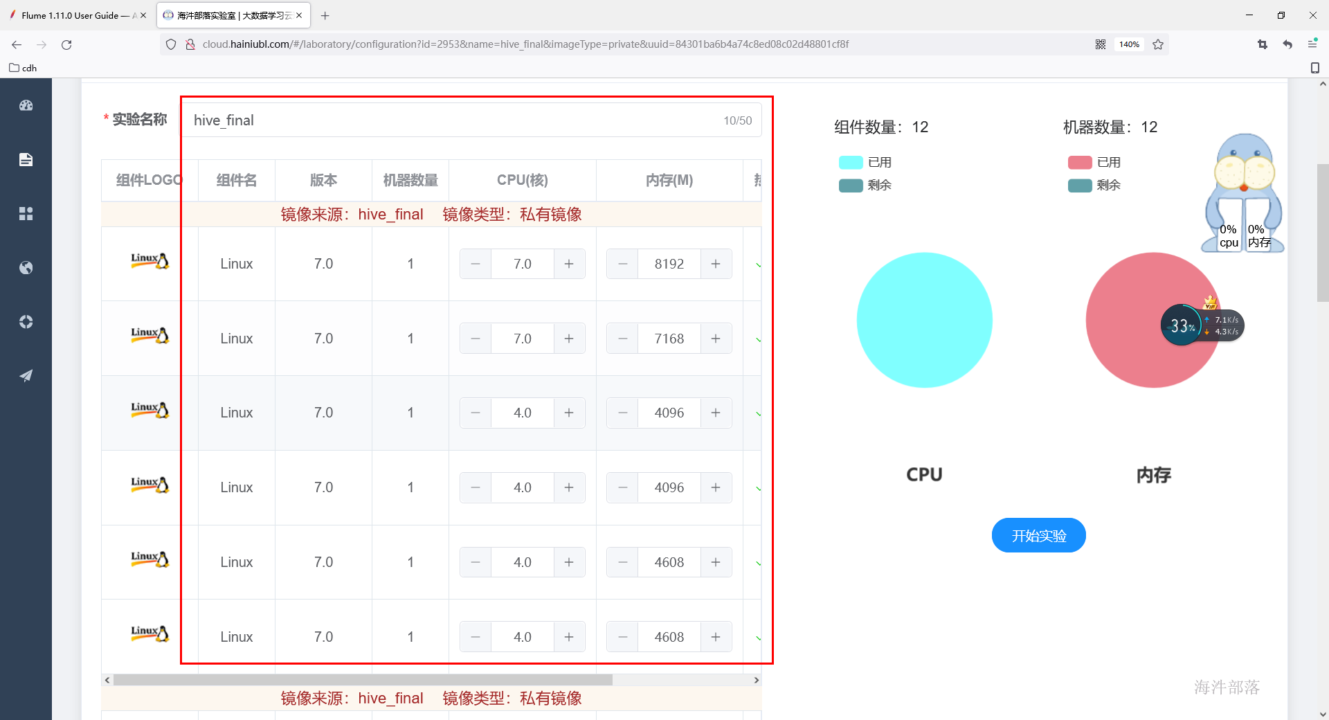 镜像地址:http://cloud.hainiubl.com/#/privateImageDetail?id=2953&imageType=private。选择添加到实验配置