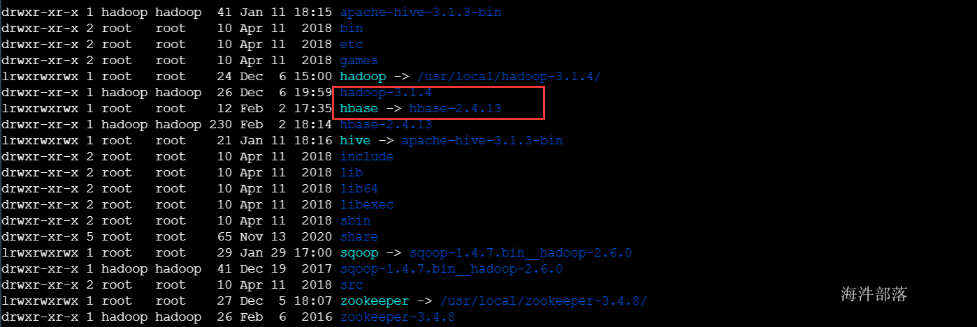 chown -R hadoop:hadoop /usr/local/hbase-2.4.13