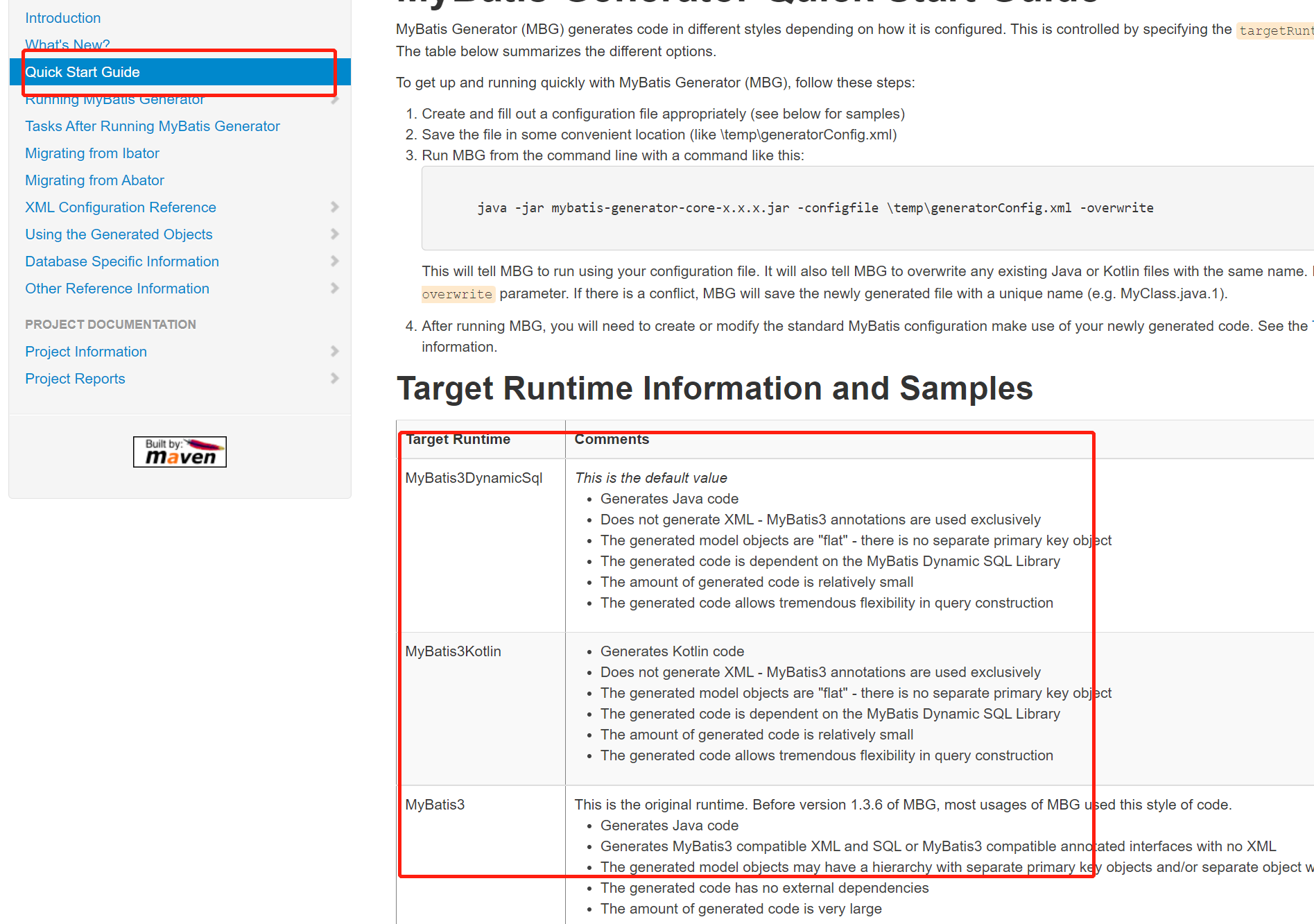 关于targetRuntime 的不同,官网已经为我们详细介绍了,参考如下