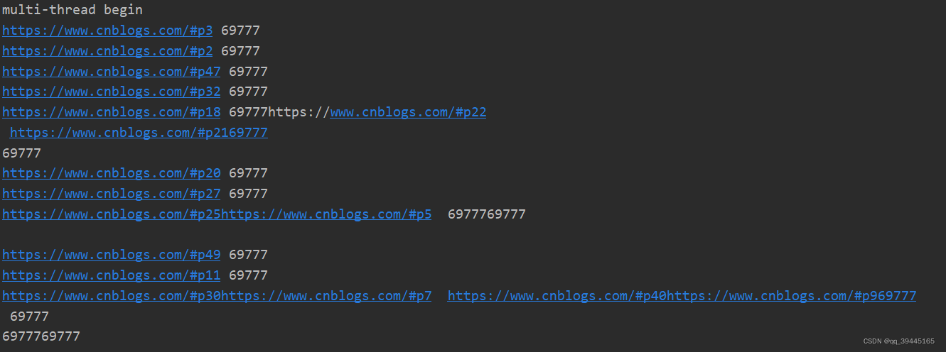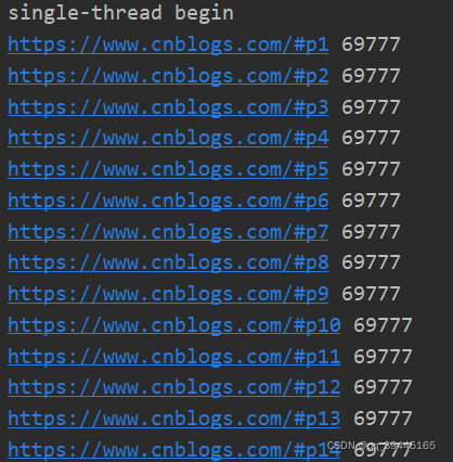 根据输出结果可以发现单线程是按照顺序爬取的,而多线程是并发执行的,没有顺序的: