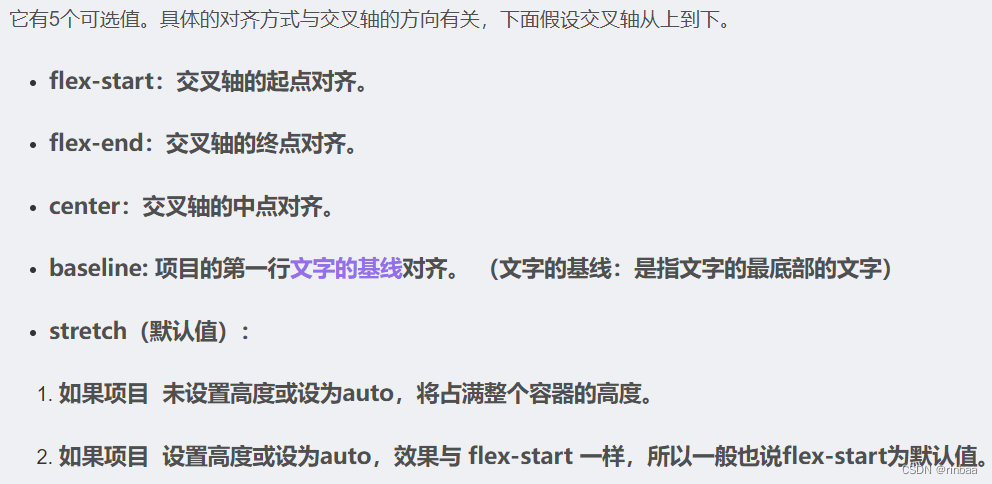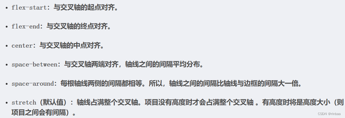 元素在交叉轴上的对齐方式: