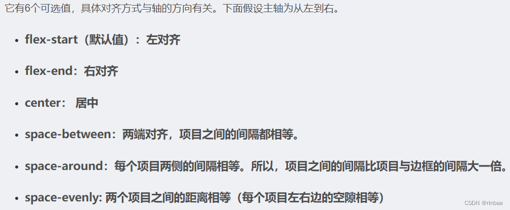 元素在主轴上的对齐方式: