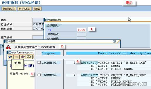 现在用户 BUTCHER 建立物料主数据,输入工厂 1000 ,提示 M3 855 未授权处理工厂 1000 的