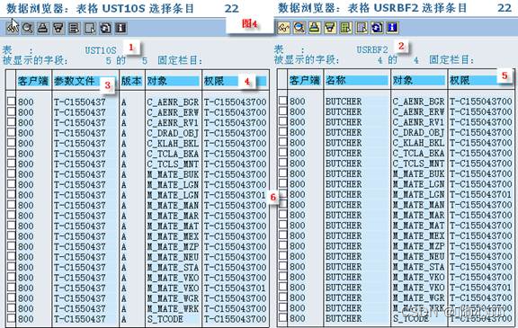 图 4 是用户参数文件表 USR10S 和用户授权表 USRBF2 的合成图。