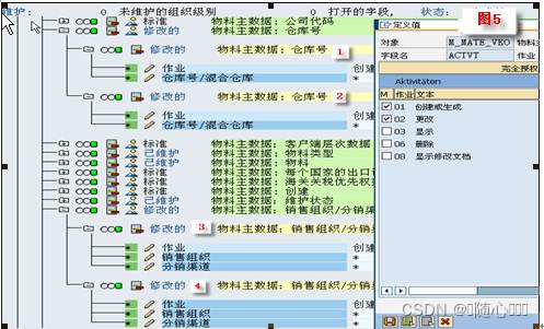 图 5 表示建立物料主数据的仓库号和销售组织 / 分销渠道默认授权了两次。