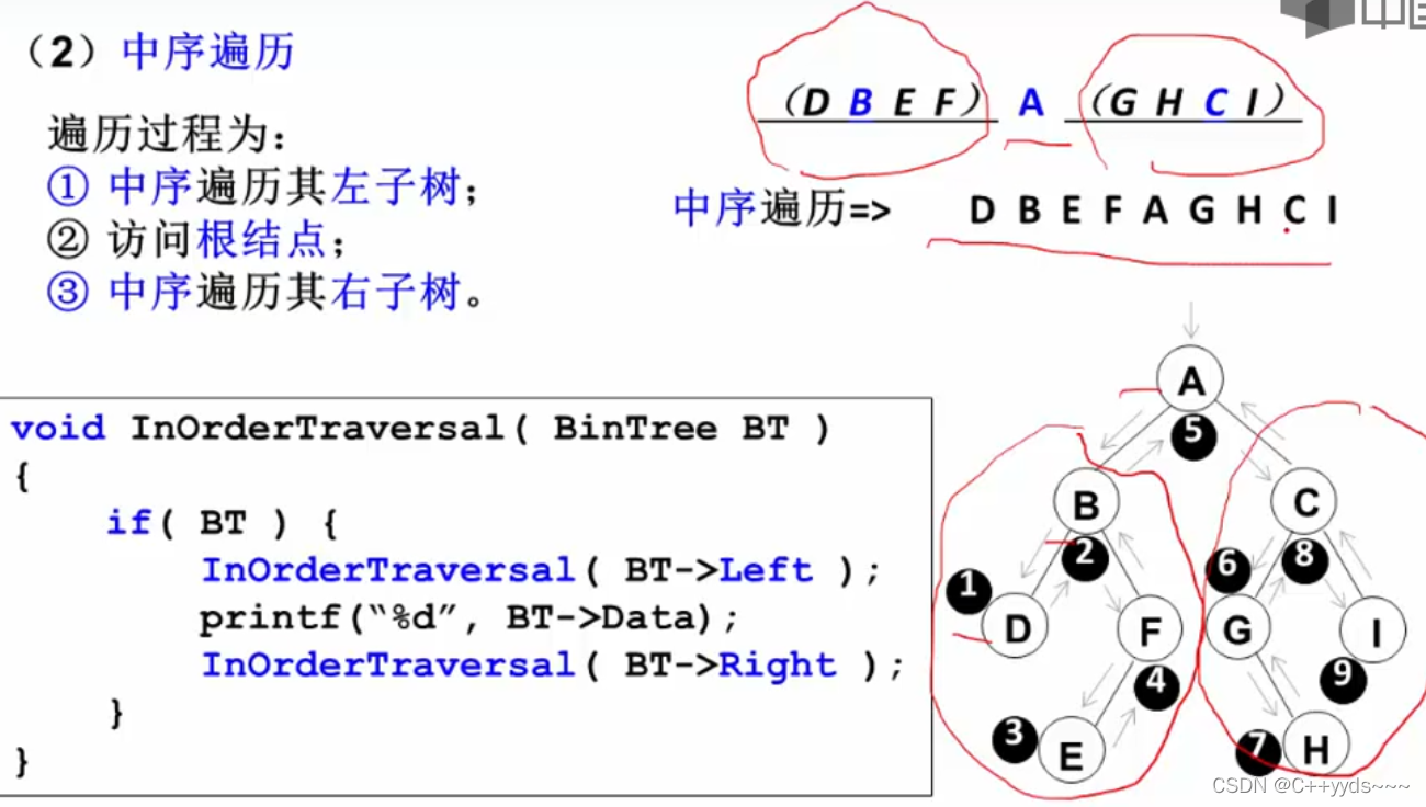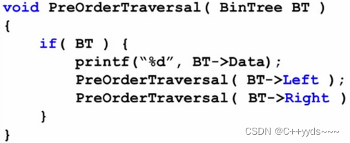 2、这个遍历函数非常简单,一个无返回值的函数,它的参数为二叉树首结点地址,if BT表示BT不为空的时候方可执行块中代码