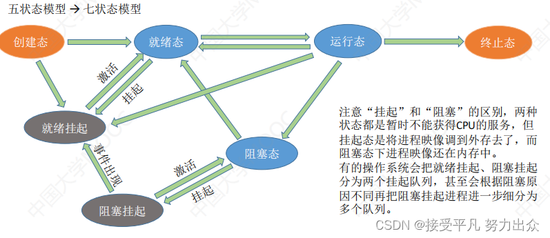 挂起态又可以进一步细分为就绪挂起,阻塞挂起两种状态