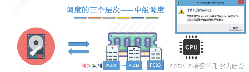 1.作业调度为进程活动做准备,进程调度使进程正常活动起来,中级调度将暂时不能运行的进程挂起,中级调度处于作业调度和进程调度之间。