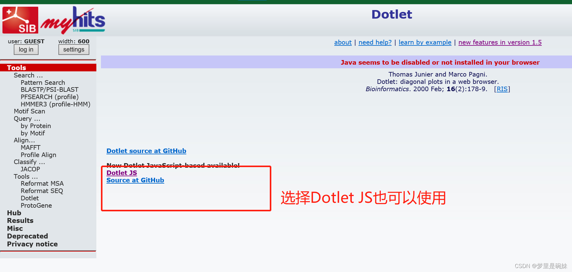Dotlet 基于 Java 开发,所以页面打开后会蹦出 JAVA 对话框。(http://myhits.isb-sib.ch/cgi-bin/dotlet)。