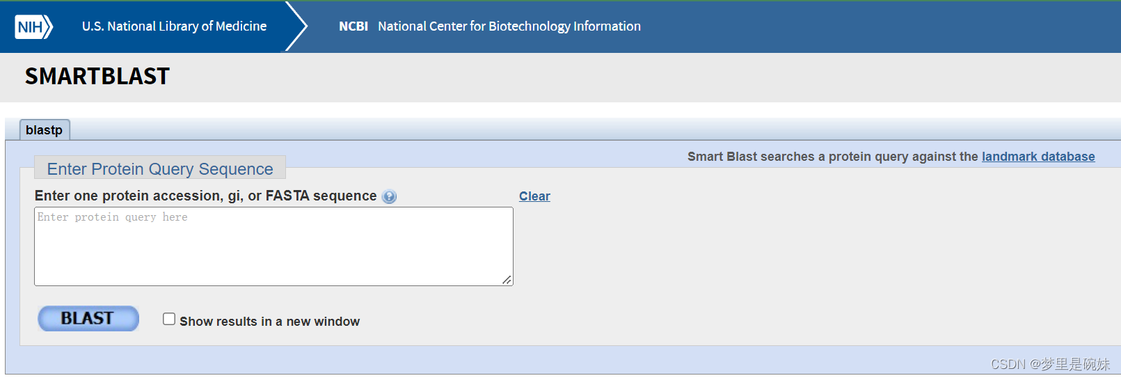 除了前面讲的这三种 BLAST,NCBI 还开发了一个 SMART-BLAST(聪明的 BLAST)。SMART-BLAST 可谓是标准 BLASTp 的简约强化版。操作极其简单,简单到只需要输入序列。