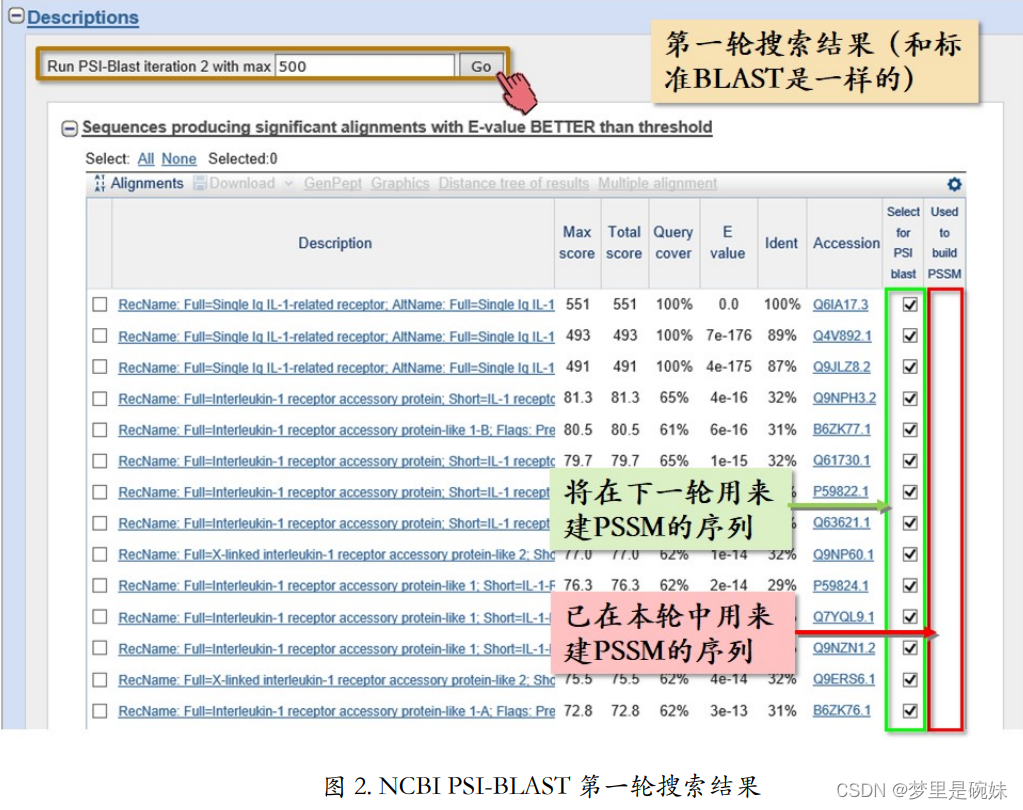 第一轮搜索结果(图 2)和标准 BLAST 是一样的。