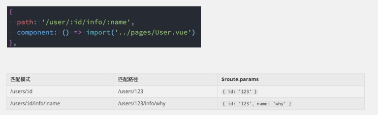 在Vue Router中,我们可以在路径中使用一个动态字段来实现,我们称之为 路径参数;