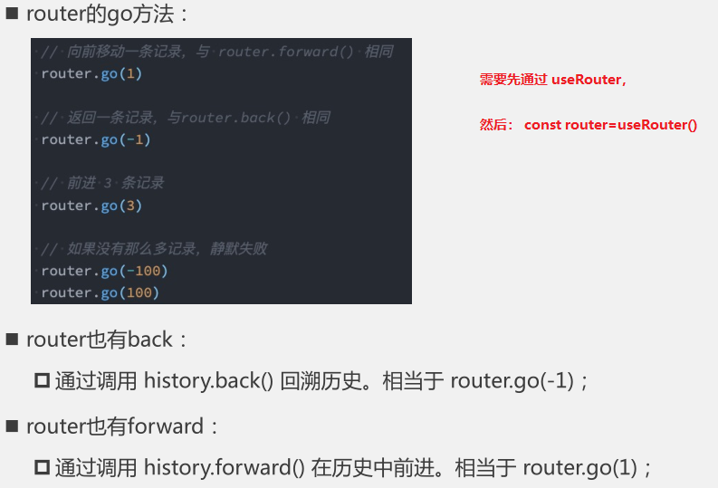 需要引入 userRouter (注:不是userRoute) 这个hooks来实现。