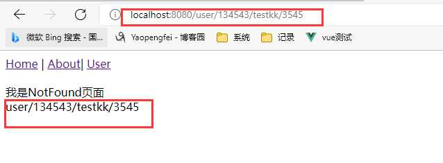 B. 在NotFound页面通过 $route.params.pathMatch 获取到传入的参数