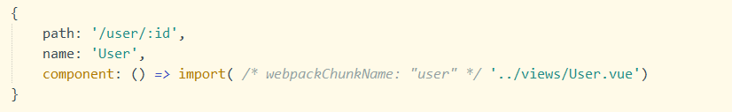 component: () => import( /* webpackChunkName: "user" */ '../views/User.vue')