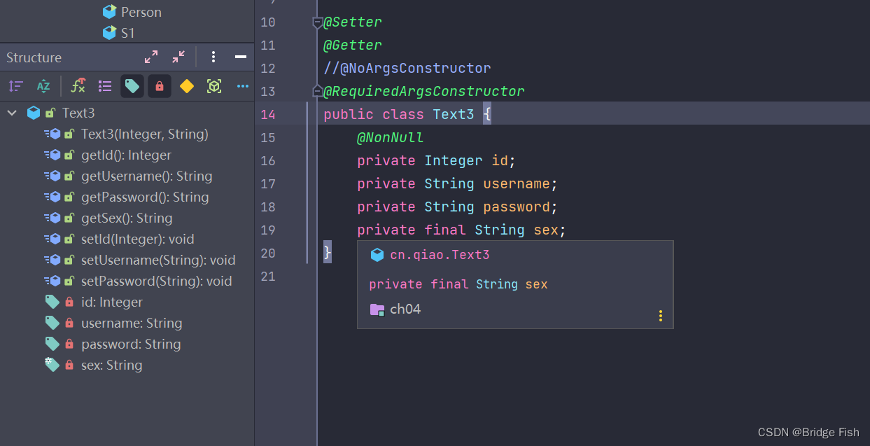 在IDEA中,按住Ctrl+7 可以查看Lombok生成的代码。