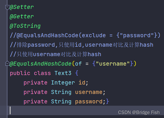 作用:生成equals和hashCode、 canEqual方法。 用于比较两个类对象是否相同。