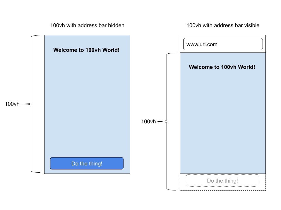 一图胜千言。移动端100vh已经把url地址栏和底部的工具栏包含到了整个100vh里。导致底部内容被底部工具栏遮挡。那高度改成100%呢?