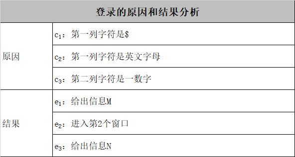 分析程序的规格说明,列出原因和结果。如下表所示。