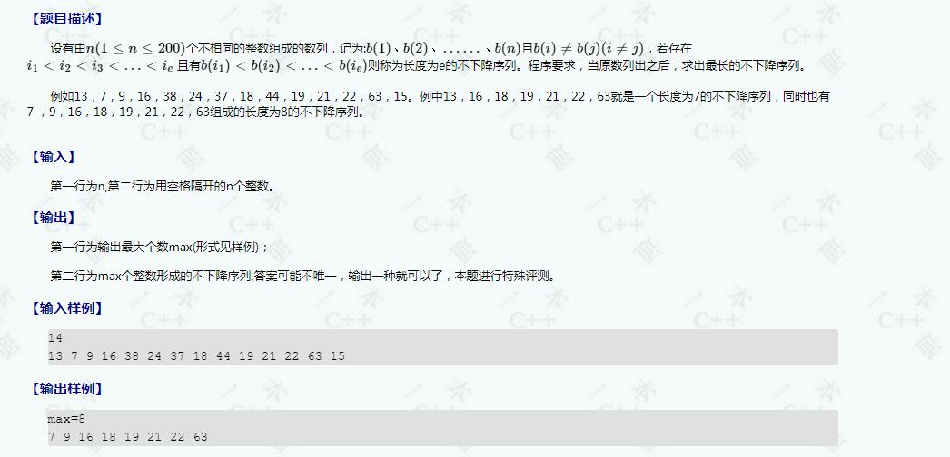 【例9.3】求最长不下降序列