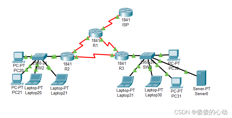 · Server0 是仅支持 IPv6 的服务器,必须且只能通过 R3 下的设备访问(仅通过 ping)。