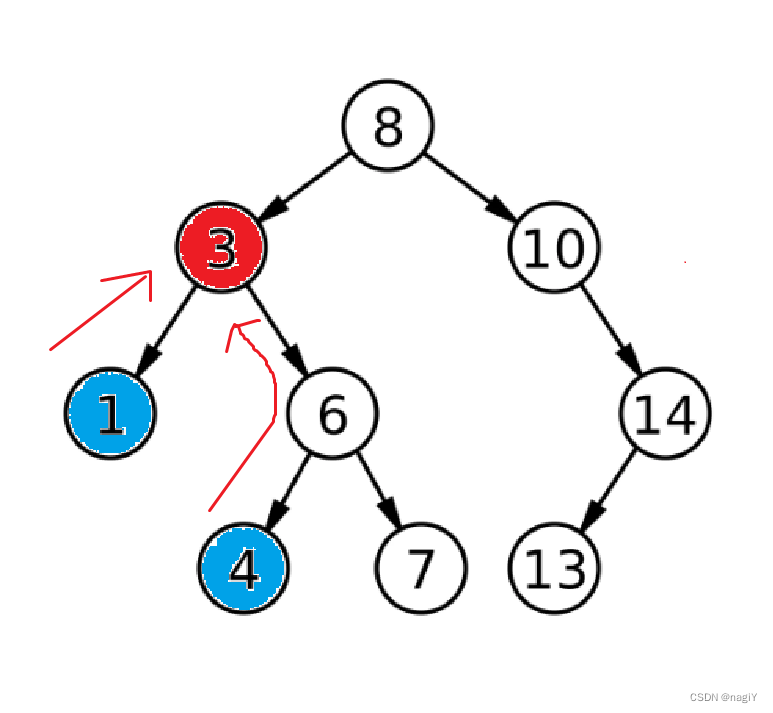 观察上图,节点1和节点4的最近公共祖先是3,这是不是很像相交链表的问题,关于相交链表,曾经我在另一篇文章里写到过,读者可以参考:反转链表 合并链表 相交链表