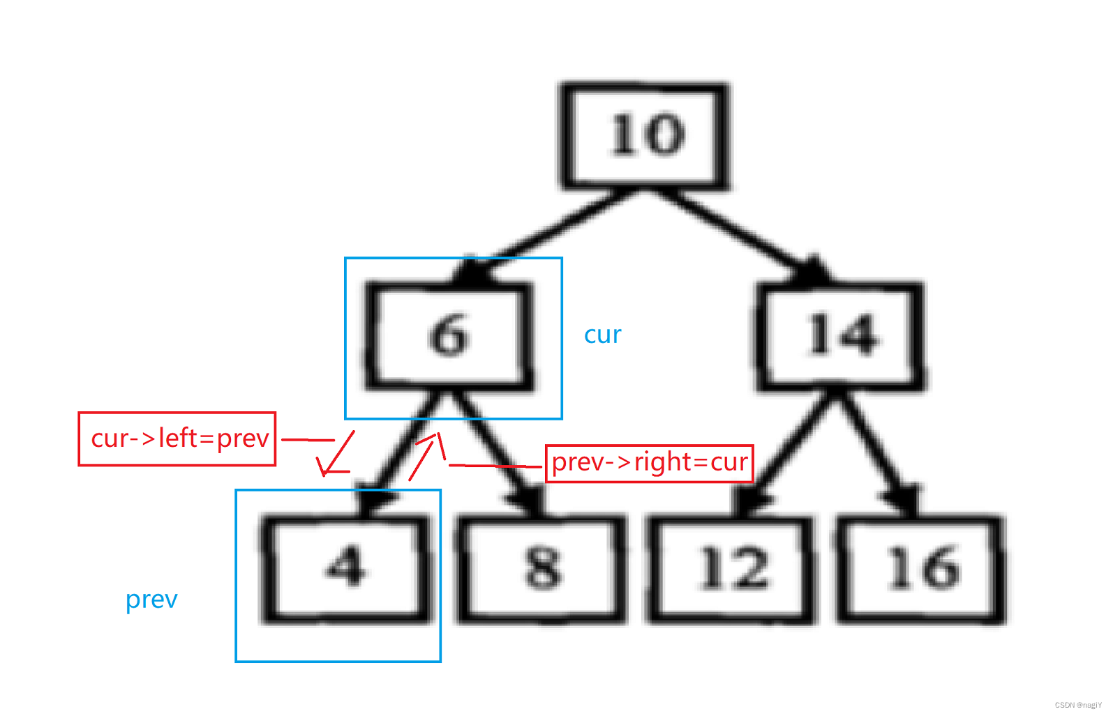 void InOrder(TreeNode*cur,TreeNode*&prev) //注意要传引用