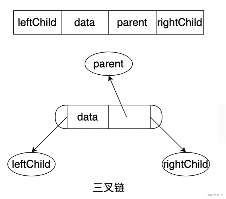 但是要转换成相交链表,就要从后向前遍历,如果节点中还存在一个指针,指向父节点就好了,这种结构其实叫三叉链结构: